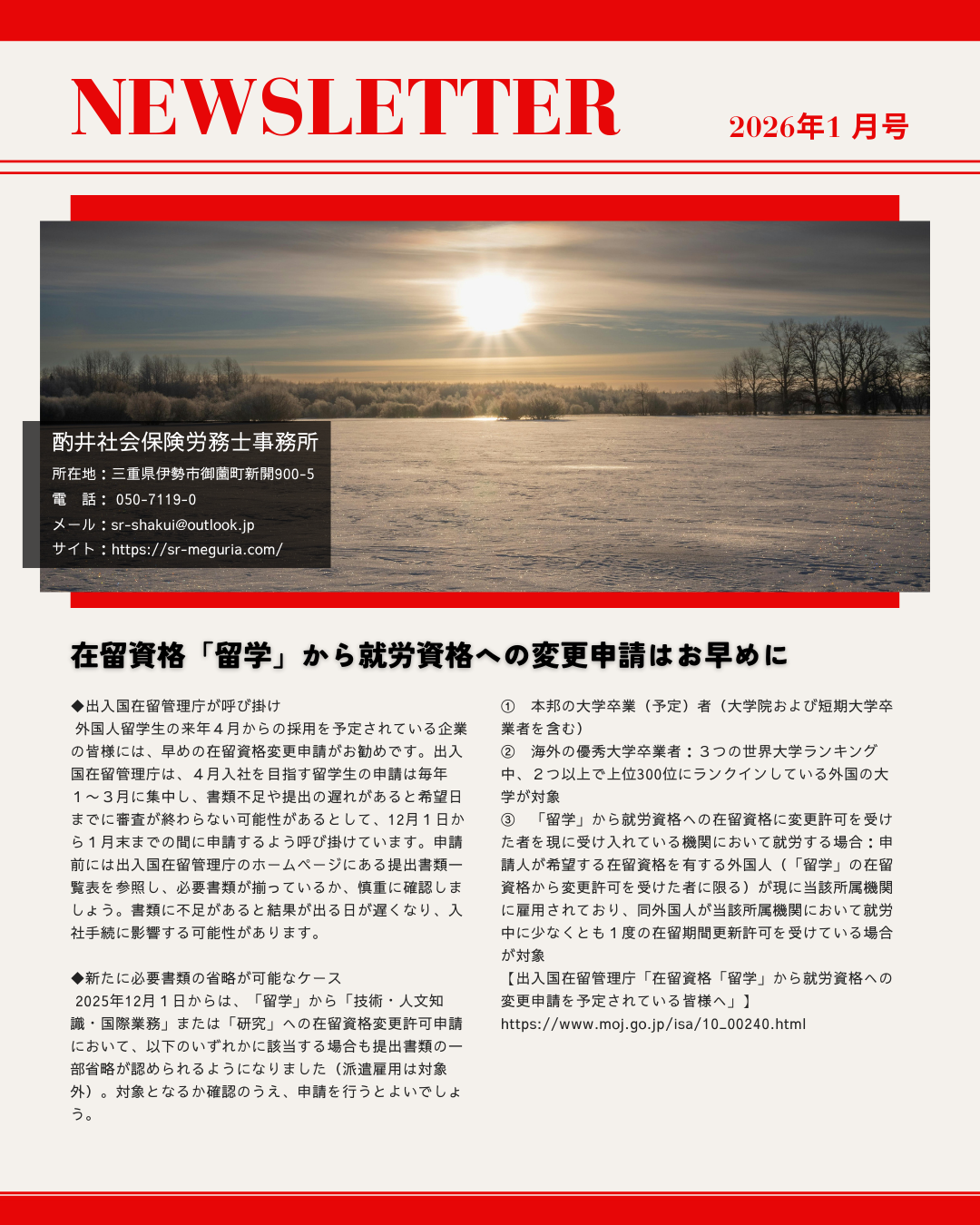 酌井社労士事務所便り【2026年1月号】(2026/1/5)